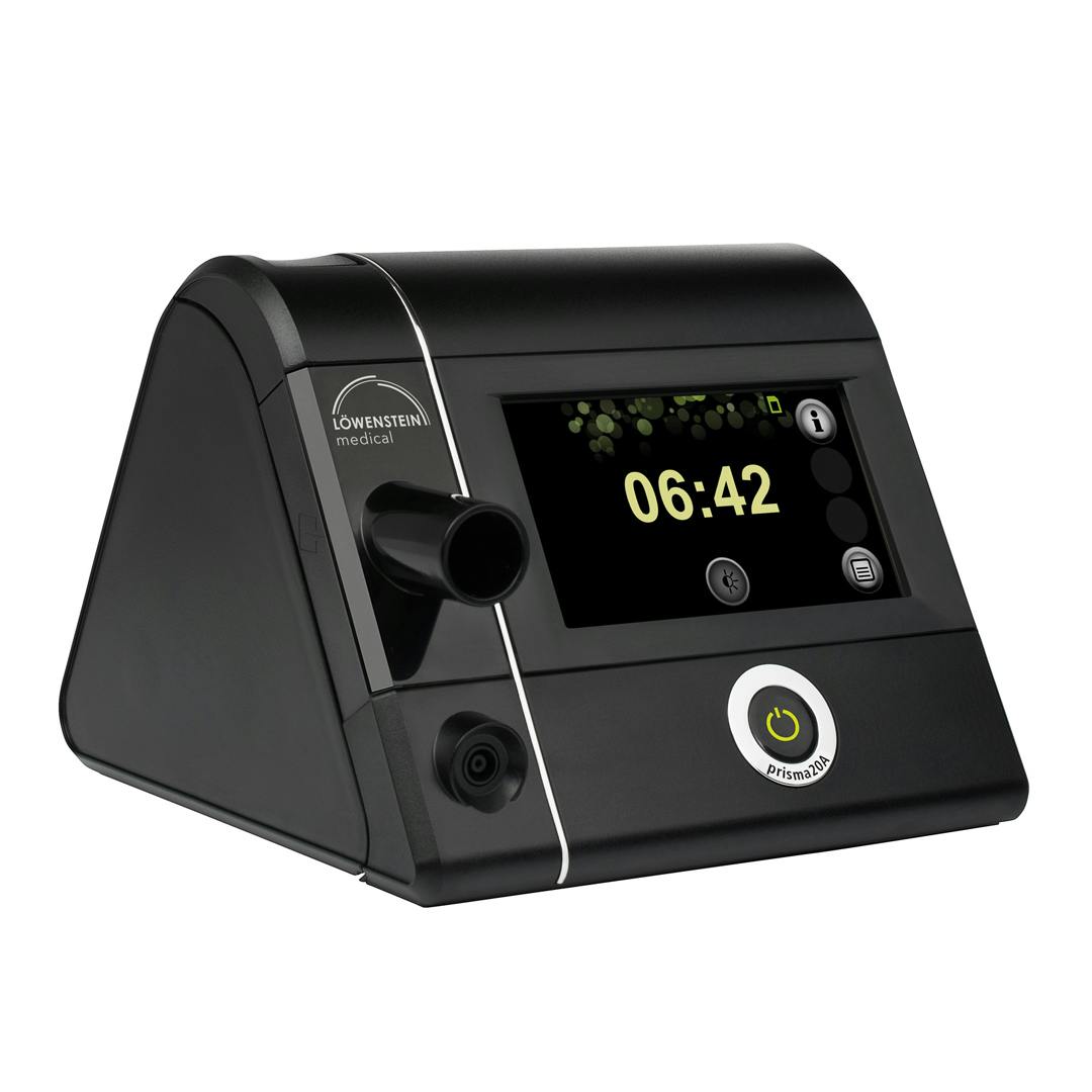 The Prisma20A APAP (auto-CPAP) device in the premium prismaLINE from Löwenstein Medical fulfils all the prerequisites for successful treatment of OSA. It has a functional operating panel with large touch screen, excellent motor with high-performance reserves and provides intelligent pressure regulation in the respiratory cycle. The Prisma20A is equipped with several comfort functions and the validated auto-CPAP algorithm with Forced Oscillation Technique technology. The device comes complete with large 400ml click-into-place PrismaAQUA humidifier and a heated breathing tube.