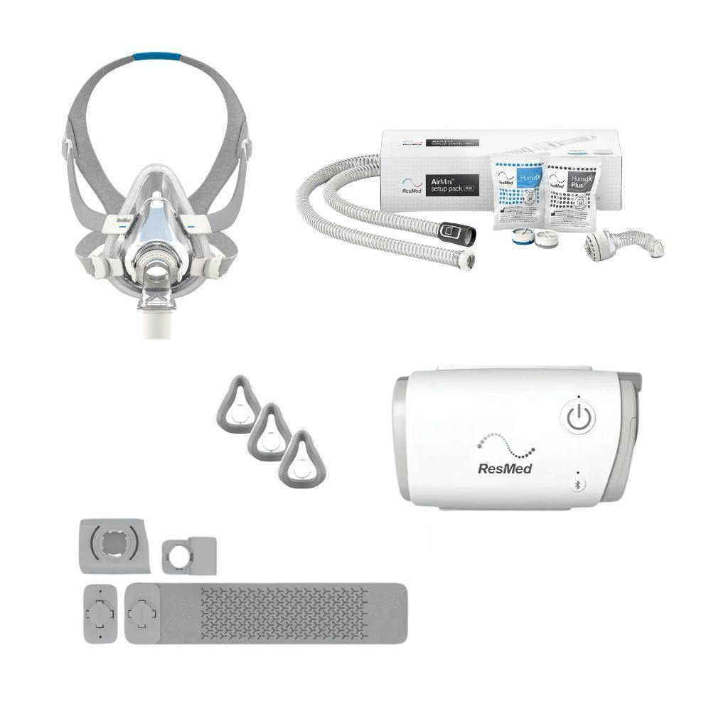 Experience exceptional bedside therapy performance with the ultra-portable ResMed AirMini automatic CPAP machine. This compact device is compatible with a curated selection of ResMed AirFit and AirTouch masks. Prioritize compatibility by confirming you possess one of these approved masks along with the suitable connector for seamless functionality. Inclusions: AirMini F20 Setup Pack Mount System AirTouch F20 Starter Pack 3PK AirTouch F20 Cushions